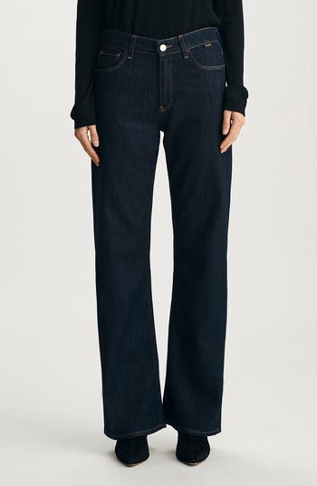 A dark rinse with a subtle luster elevates the style of these low-stretch jeans made with a high waist and relaxed, full-length legs.