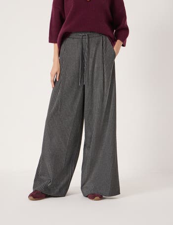 Pants that look pretty elevated (aka we made an effort) but feel like pyjamas? Yes please. This wide-leg pair has sporty side stripes and is made in our super-soft knitted jersey fabric, so we can feel put-together and comfortable all day long. Tuck something slim-fit into the waistband to get creative with volume and shapes.