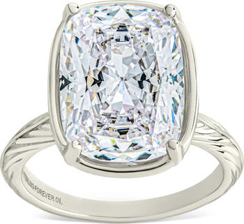 Bring main character energy to your finger with this polished ring topped by a large cushion-cut cubic zirconia and done with a textured band.