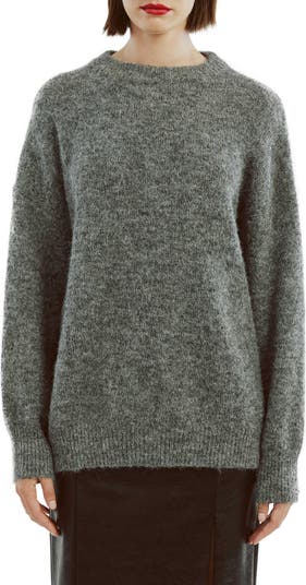 Slouchy dropped shoulders frame this ultracozy relaxed-fit sweater knit from fuzzy wool-kissed yarns with warming ribbed trim.