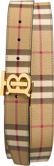 Founder Thomas Burberry's monogram brands both sides of this reversible belt that switches seamlessly between smooth leather and coated canvas patterned in archival checks with hand-painted edges.
