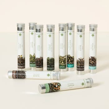 Explore a world of flavor without ever leaving the comfort of your favorite chair. Your passport is this international set of 10 single-estate, loose leaf teas. Both a flavorful introduction for the tea novice and a journey off the beaten path for the connoisseur, the assortment offers a taste of the wide variety that tea has to offer.
