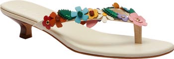 Tea rose appliqués in a rainbow of colors bring heritage Coach style and an air of spring to a reimagined flip-flop boosted on a stacked kitten heel.
