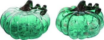Introducing the Transpac Glass Teal Pumpkin Set of 2, a stunning addition to your fall and harvest decor. These decorative pumpkin figurines are crafted from high-quality glass, showcasing a beautiful teal color that adds a unique touch to your seasonal displays. Perfect for tabletops, these pumpkins bring a modern twist to traditional autumn decorations. Whether you are decorating your home for the season or looking for the ideal gift for a friend, these glass pumpkins are sure to impress. They are easy to care for; simply spot or wipe clean to maintain their vibrant appearance. Ideal for indoor use, these pumpkins make excellent hostess gifts or charming accents for any gathering. Embrace the spirit of fall with this delightful set.