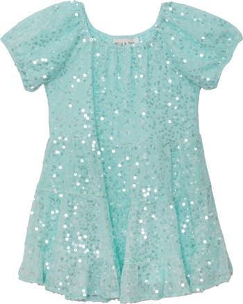 Let your little one shine in our Teal Twinkle Dress. Crafted from a delicate mesh fabric, this piece is covered in shimmering sequins that catch the light with every movement. The lovely teal color is perfect for any celebration. It features a gathered scoop neckline, sweet puffed sleeves, and a tiered skirt for extra volume and fun. This dress is a perfect addition to your boutique's collection, designed for moments that sparkle and create lasting memories.