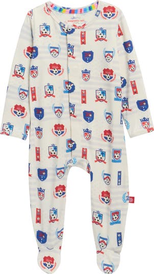 Little sports fans will love the soccer print and soft fabric of this long-sleeve footie fastened with SewSafe™ magnetic closures for quick, easy changes. The RightFit™ fabric is easy on the arms, belly-friendly and sized for thighs with ample room for growing babies on the move.