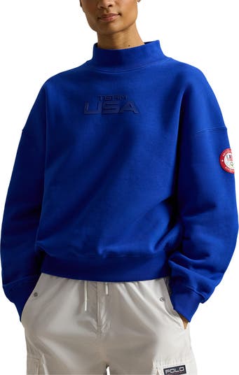 Patriotic spirits meet varsity vibes on a relaxed sweatshirt made of cotton fleece with an American-flag patch and USA appliqués popping tonally at the chest. Dropped shoulder seams emphasize the roomy fit that keeps you comfortable whether you're moving, relaxing or enthusiastically celebrating.