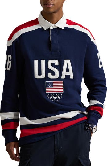 Gear up to cheer on your favorite athletes and look like you're ready to compete yourself in this shirt that blends authentic rugby styling with the warm comfort of cotton-blend fleece.