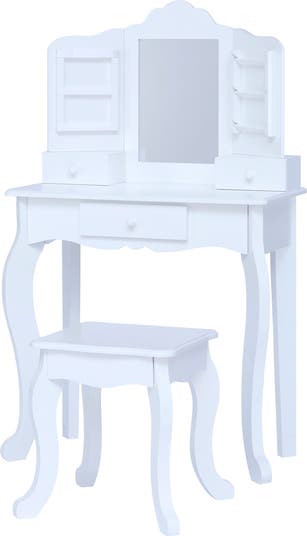 Little ones will love getting ready with this vanity that features built-in drawers, ribbons for decorating and removable bars for extra accessory storage.