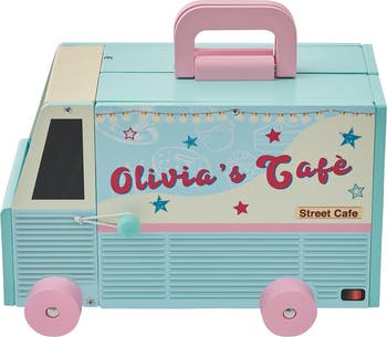 Little ones can take their dolls' cafe experience on the road with this accessory-packed food truck boasting sweet pastel furniture and a convenient top handle. Fully rolling wheels mean adventure-ready fun, and all of the pieces fit in the truck for easy storage.