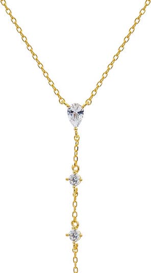 Meet the Teardrop CZ Lariat Necklace by Adina Eden, a beautifully balanced Necklace you'll wear again and again. Shimmer meets structure in this lariat necklace, now available in Gold to suit every vibe. From power meetings to weekend plans, you can trust this piece to level up any look without making it feel overdone or excessive. Layer this gold plated lariat necklace with accents from our Chain Necklaces collection to create a cohesive, elevated look. The easiest way to elevate your look without overthinking it.