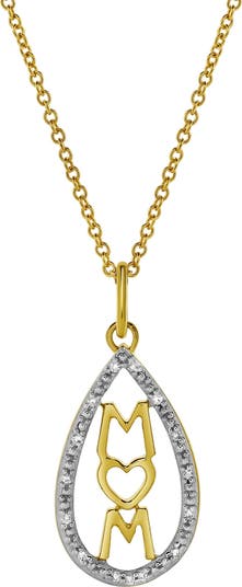 Teardrop Mom Diamond Pendant Necklace in 10K Yellow Gold