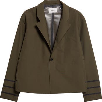Topping the lead-off look from Coperni's spring '26 runway presentation, this technical jacket boasts clean lines and an adaptable cut thanks to the straight-cut hem and notched lapels made to be wearable in the traditional open style or closed up to form a stand collar.