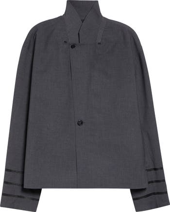 Topping the lead-off look from Coperni's spring '26 runway presentation, this technical jacket boasts clean lines and an adaptable cut thanks to the straight-cut hem and notched lapels made to be wearable in the traditional open style or closed up to form a stand collar.