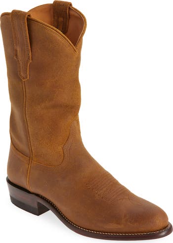 The water-resistant suede upper has been stone-washed and tumbled, giving this Western boot a worn-in look that reads you've been riding the range for years.
