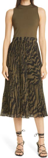 A fine-gauge ribbed tank meets a striped plissé skirt for a put-together separates look with one-and-done ease.
