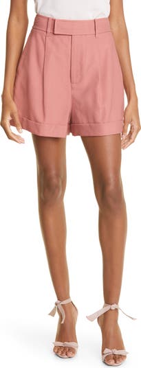 Designed in a blushing hue, these high-waist shorts feature tucked front pleats and cool cuffed hems.