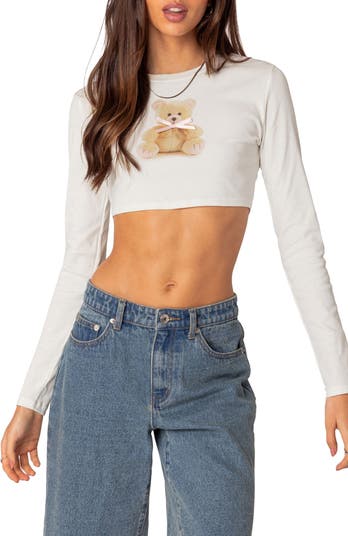 A cuddly teddy fronts this stretch-cotton top cut in a cool cropped silhouette.