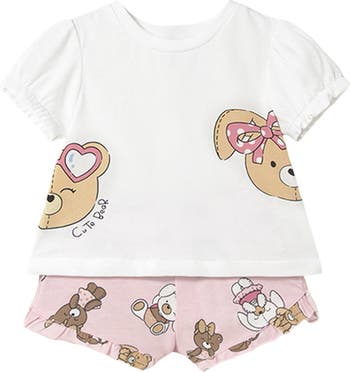 The Teddy Baby Rose Shorts Set is a sweet and comfortable outfit for your little one, combining playful charm with soft elegance. The set includes a cute top featuring an adorable teddy bear design, paired with matching shorts that offer ease of movement and all-day comfort.