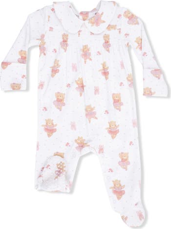 Prima ballerina teddy bears dances across this smocked-front footie complete with darling Peter Pan collar and foldover cuffs.