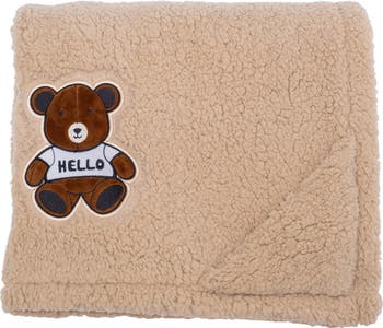Wrap your little one in the teddy-bear softness and cuteness of this fleece blanket that reverses from smooth to plush sides.