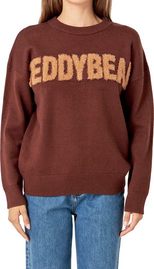 Soft and cozy like a favorite childhood stuffie, this relaxed sweater with delightfully tactile chenille lettering is one you'll reach for again and again.
