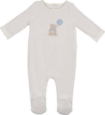 Baby will be soaring with comfort in this cotton-rich footie adorned with a balloon-holding teddy at the front.