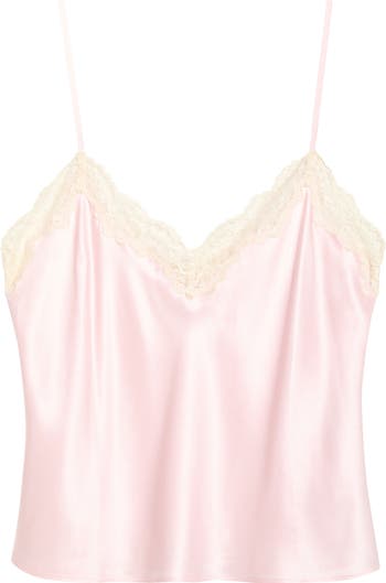 Luxuriate in this barely there pure-silk cami with a low-cut silhouette, lacy trim and slender, adjustable straps for the perfect fit.