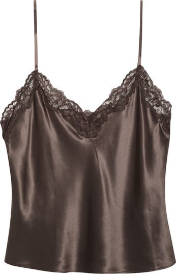 Luxuriate in this barely there pure-silk cami with a low-cut silhouette, lacy trim and slender, adjustable straps for the perfect fit.