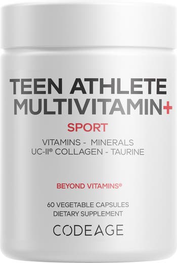 - Codeage Teen Athlete Multivitamin+ also features UC-II® undenatured type II collagen per serving, a clinically studied ingredient for its supportive role in joint flexibility and knee comfort.* This advanced multivitamin for athletes also offers coconut water powder and d-ribose. Each bottle offers 30 servings for a 1-month supply in a convenient capsule form.