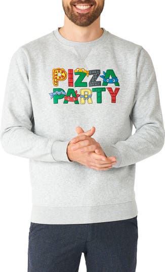 The original party animals are ready for the shindig when you show up in this sweatshirt so don't forget the pizza.