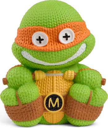 The robots present to you this preposterously adorable Michelangelo vinyl figure as seen in Teenage Mutant Ninja Turtles. Officially Licensed Approximately 5 inches tall and perfect for display or play Our friendly robots designed this figure to look like knit fabric at a glance, but it’s actually made of vinyl Signature vinyl tag on the figure, complete with barcode decal to resemble a sewn-in tag What is Handmade by Robots? Ambulatory biological units like yourselves require warmth and soft embraces. We robots know not of such things. Our best approximation is thus enclosed the appearance of interwoven organic fibers into recognizable characters from your pop culture, though made of solidified polymers. Our research indicates they would be given and received as gestures of friendship and love. May your acquaintances find value in such meaningless activities.