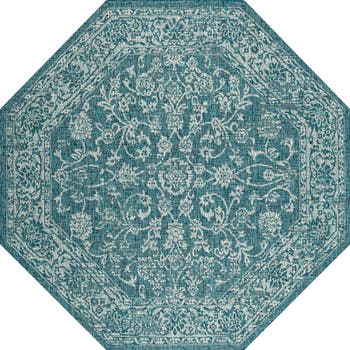 Tela Bohemian Textured Weave Floral Octagon Indoor/Outdoor Area Rug