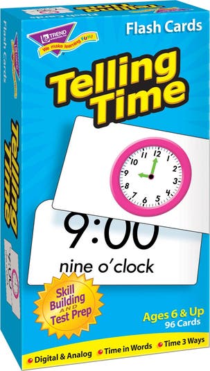 Content-rich time cards do their job, teaching students new skills in a fun way. This educational aid helps students tell time using analog clocks, numbers, and words. Self-checking, answers on back. Sturdy cards and storage box. Students will delight in mastering new skills. No-see-through cards with quick-sorting, rounded corners. 96 cards, 3" x 6".