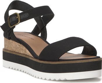 A cork-textured wedge adds a hint of earthy style to this ankle-strap sandal that's an everyday standby.