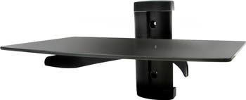 Mega Mounts shelf wall mount is built with tempered glass to support gaming consoles and media players. It's a great companion to our Full Motion Wall mount for Plasma, LCD, LED TV's.This wall mounted shelf hides cables and cords for a clean setup. The shelf media organizer includes a full set of mounting hardware. Item Dimensions: 14.25" x 6.25" x 9.75" Item Weight: 5.80lbs