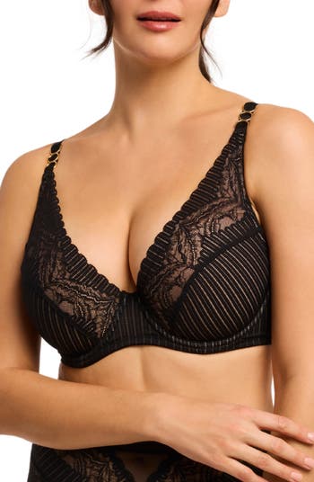This mesh-lined lace bra is fashioned with underwire cups that provide added support while enhancing cleavage.