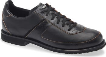 Inspired by retro bowling shoes, this leather derby is crafted from Italian leather with the edges left natural to highlight the design lines. It's a relaxed formal-shoe hybrid that features subtle suede detailing and a Vibram® vulcanized-rubber sole.