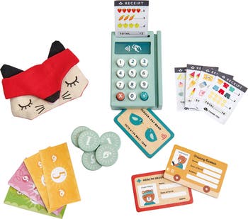 Show your little one how adults pay at the store with an interactive set that includes play currency, a card reader and an adorable canvas purse.