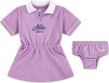 Baby's sporty style will bloom in this tennis-inspired dress and matching bloomers set marked with signature logos.