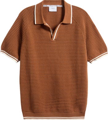Made from breathable cotton, this sweater-polo boasts an open stitch and a casual, open collar.