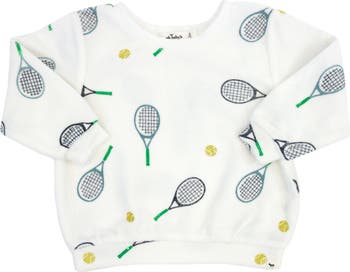Boxy sweatshirt in cotton terry with all-over tennis print. Designed in Minnesota. Available in infant, toddler and boys sizes.