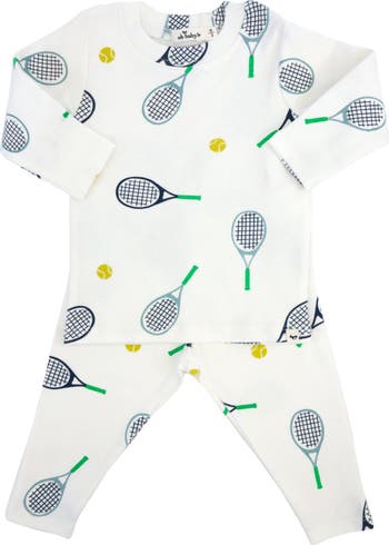 All over tennis print on a soft cotton long sleeve tee with matching pants. Available in infant sizes. Designed in Minnesota.