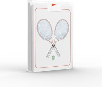 This 8-pack of greeting cards is elegantly illustrated by artist Ingrid Ramus, founder and owner of the Ramus & Co brand. Artwork features crossed tennis rackets. All greeting cards are made in the USA on heavyweight uncoated and locally-sourced and manufactured card stock. Each card is accompanied by a hand-embossed envelope made with heavyweight 95lb paper and a peel-and-stick flap - no licking envelopes here! All Ramus & Co. greeting cards are printed on FSC and SFI certified paper sourced from a regional mill that harnesses 66% of its energy from on-site sustainable sources, such as emission-free hydroelectricity and biomass co-generation from wood waste. All 8 greeting cards come packaged as a boxed set. Husband-and-wife team Calvin and Ingrid Ramus founded Ramus & Company in 2019, in New England, USA. Ingrid, the creative designer behind the brand, originates from Mexico, where she cultivated her skills in fashion and textile design. Drawing from her unique and inquisitive perspective on preppy style, Ingrid prolifically designs whimsical yet classic stationery and lifestyle items.