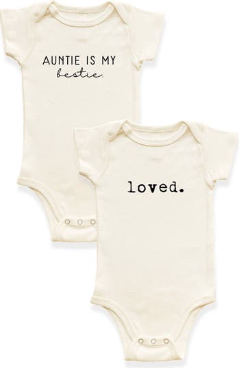 2 Pack Auntie Is My Bestie + Loved. Organic Cotton Baby Bodysuits