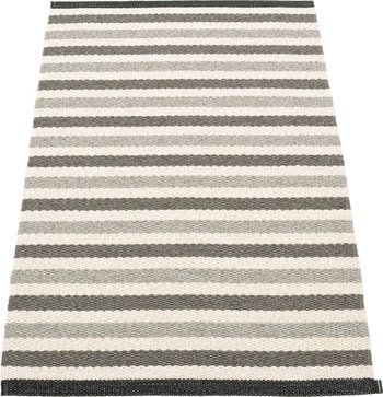 Woven on a traditional loom with wooden shuttles, this playfully striped machine-washable rug is reinforced with welded edges for added durability.