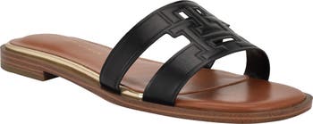 Logo stitching instantly upgrades the look of a breezy slide sandal complete with a lightly cushioned footbed.