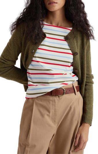 Build your sweater-weather wardrobe with this merino-wool-blend cardigan knit with a classic crewneck and warming ribbed trim.
