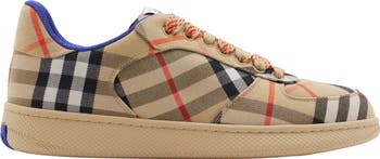 House check and a logo-lettered inset at the sole bring signature Burberry flair to this Italian-made canvas sneaker in a low-top profile.