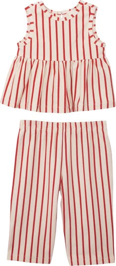 This vintage striped knit two-piece set features a sleeveless peplum top and matching bottoms. Fabric Care & Content Machine Wash Cold | Line Dry | Do Not Bleach 95% Cotton 5% Spandex